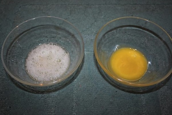 1. Separa la yema de la clara y ponlas en diferentes recipientes. Bate la clara un poco.