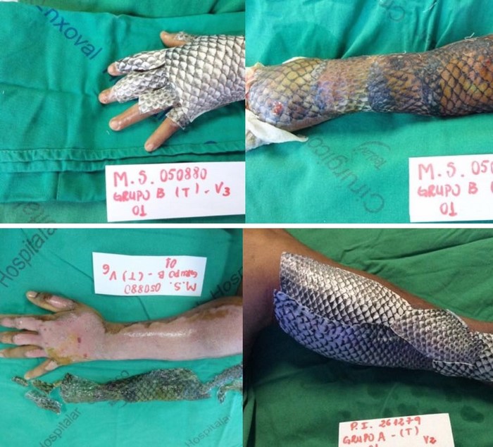 Los especialistas utilizaron la piel de tilapia. Antes de su uso, a la piel se le eliminan las escamas, la fibra muscular y las toxinas. De esta manera, es totalmente segura, y no transmite ninguna enfermedad.