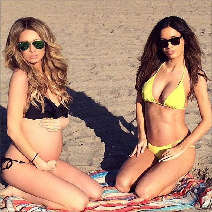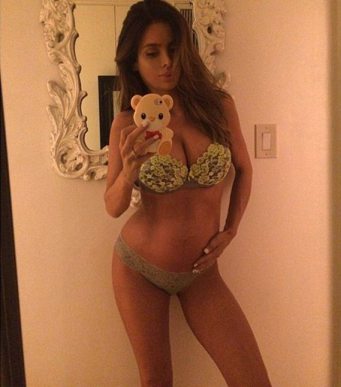 Compara la pequeña barriga de Sarah con esta barriga común y corriente de otra muchacha embarazada, también modelo.