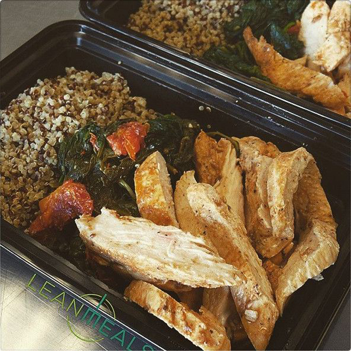 Este es el almuerzo de Sarah. Aquí tenemos pollo, espinacas y atriplex.