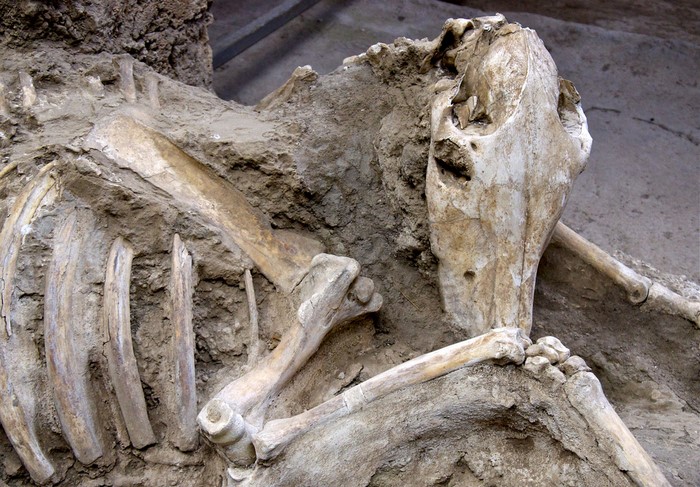 Huesos de caballos y perros fueron encontrados junto a los restos de las personas. Animales fieles al hombre, que estuvieron a su lado hasta el final del siniestro.