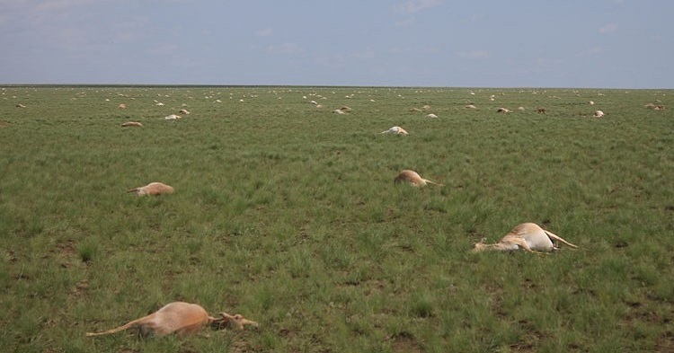 Este insólito suceso ocurrió en los días finales de mayo. Un grupo de ecologistas, entre ellos el geoecologista Steffen Zuther, llegaron a Kazajstán para hacer un monitoreo de rutina y observar el parto de un rebaño de saigas, un tipo de antílope de aspecto único, que se encuentra en peligro crítico de extinción. Ya para ese entonces se venía reportando, por parte de los especialistas veterinarios del área, la muerte de algunos ejemplares.