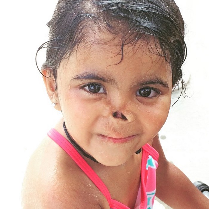 La historia de Durga es muy triste: Su madre, apenas la pequeña nació, decidió arrojarla a la intemperie. Los insectos, o algún animal salvaje, le comieron la nariz a la nena, antes de que los equipos de rescate la encontraran y transportaran al hospital. Los médicos pensaban que la pequeña no sobreviviría, pero ella logró vencer todas las dificultades…