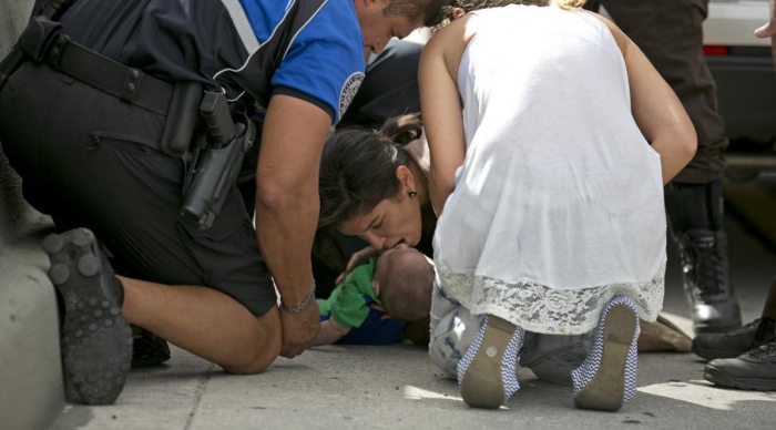 La mujer arrastró rápidamente al niño fuera del coche, y comenzó a hacerle una respiración boca a boca. Un fotógrafo local se convirtió en un testigo accidental del suceso.