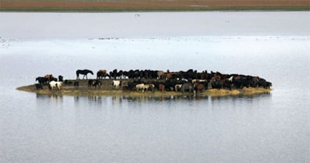 Precisamente, esto fue lo que sucedió en una isla holandesa en 2006. Una enorme tormenta inundó toda el área silvestre donde habitaba una manada de caballos. Lamentablemente, 19 de ellos no sobrevivieron. El resto terminó varado en una pequeña islita, durante tres días.