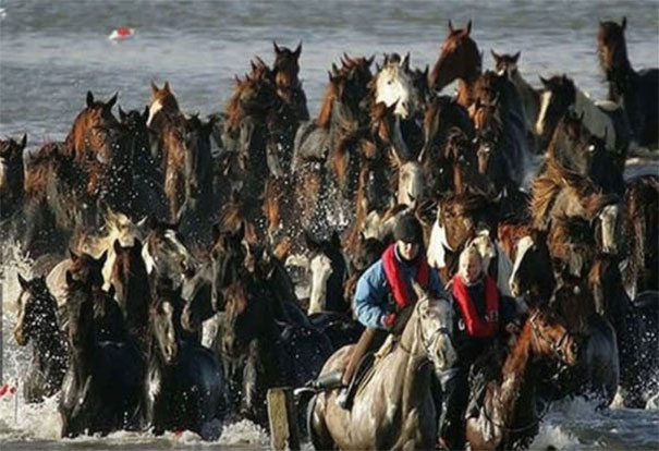 Precisamente, esto fue lo que sucedió en una isla holandesa en 2006. Una enorme tormenta inundó toda el área silvestre donde habitaba una manada de caballos. Lamentablemente, 19 de ellos no sobrevivieron. El resto terminó varado en una pequeña islita, durante tres días.