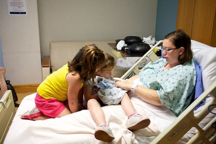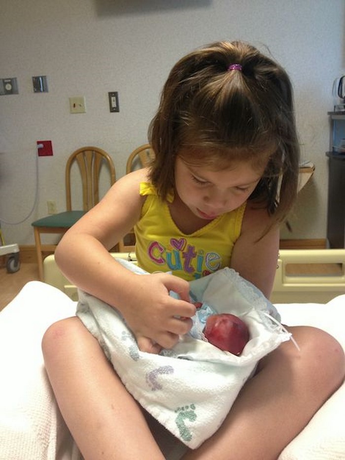 Después de consultar, la pareja permitió que sus hijas miraran al bebé. Mikaela y Emma lamentaban mucho el no poder conocer mejor a su hermano, en condiciones más propicias.