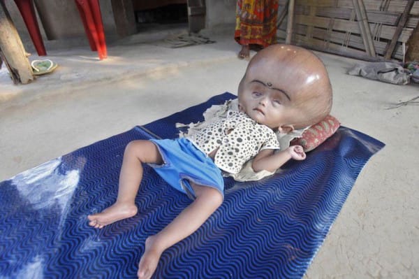 El nombre de la bebé es Roona Begum, y en aquel entonces tenía 1 año y medio. La niña sufre de hidrocefalia, una enfermedad que duplica el volumen de la cabeza. En caso de Roona, ésta superaba tres veces el tamaño de la cabeza de los bebés de su edad. Le impedía mantenerse de pie e incluso gatear. El tratamiento requería de mucho dinero, pero la familia era tan pobre que solo podía mantenerse a la esperanza de un milagro…