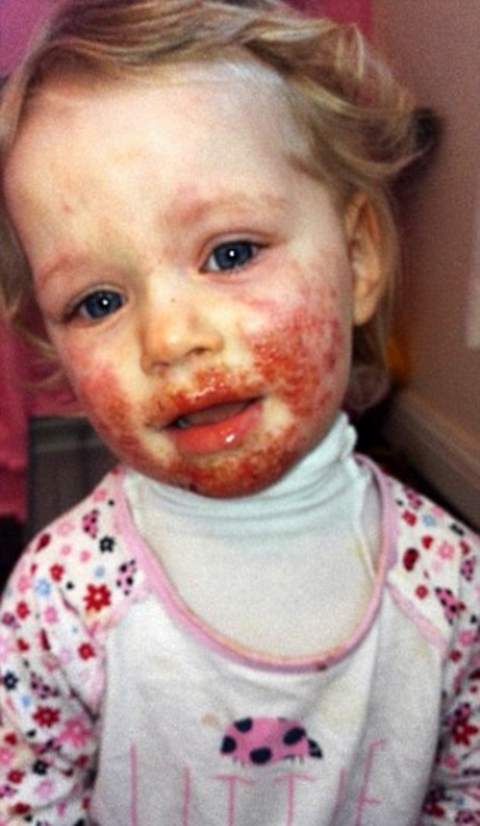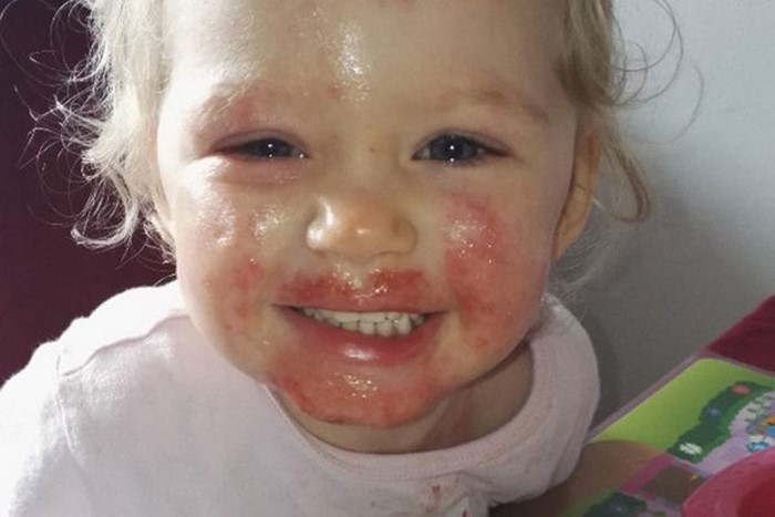 A sus dos añitos de edad, toda la parte inferior de la cara de la niña estaba cubierta de ampollas y llagas. ¡El picor era tan insoportable, al punto, incluso, de molestarle al comer!
