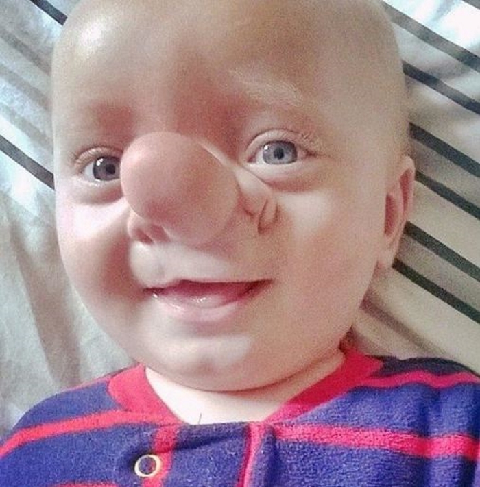 Ollie, así se llamó el bebé, nació con una hernia cerebral, por la que parte del cerebro sobresalía por su nariz. Con el tiempo, el cerebro del bebé iría creciendo, y por lo tanto, acumulándose en la nariz.