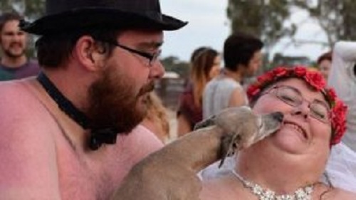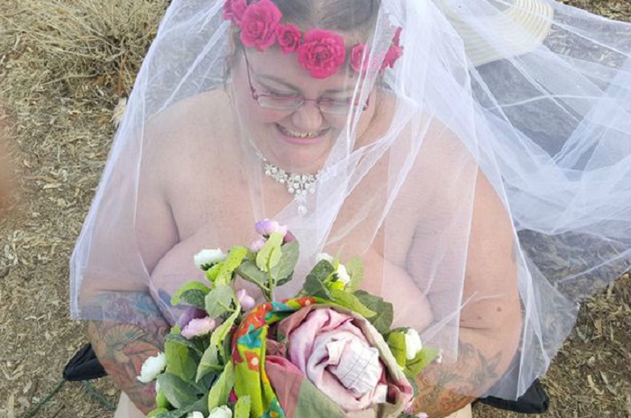 Según sus palabras, después de sobrevivir el estado de coma, ya no le preocupa en lo absoluto cómo se verá. La boda tuvo lugar en medio de un festival, asistido por más de 700 personas. Acorde a la imagen de la novia, el novio llegó a la ceremonia, llevando solamente una corbata y sombrero de copa.
