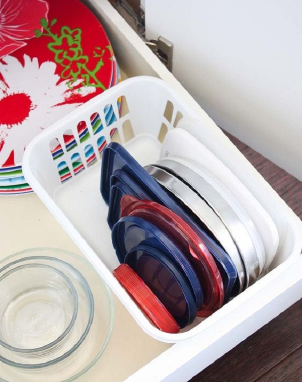 - ¿Recuerdas donde solíamos guardar los CDs y casetes? Estos soportes de plástico para los medios de la música son una buena opción para mantener el orden en la cocina, y que no se te pierdan las tapas.