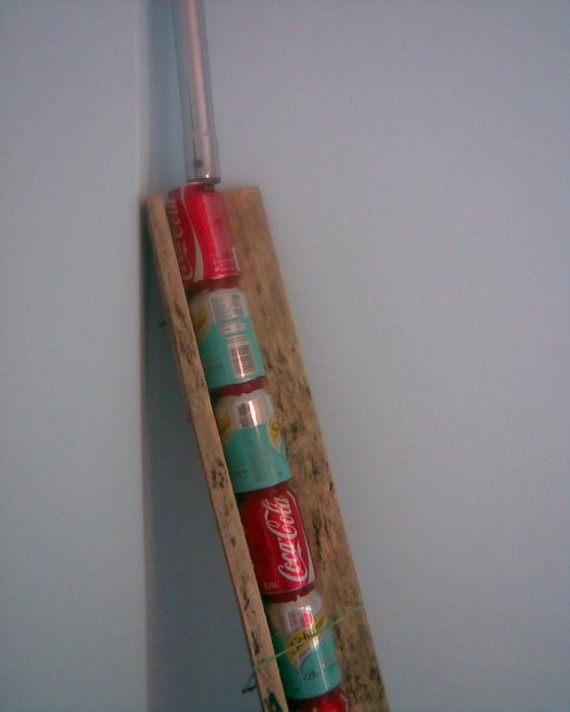 4. Para asegurarte de que queden alineadas, fabrica una plantilla de madera, sobre la cual colocarás las latas. Las tablas deben formar un ángulo recto entre sí.