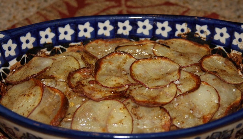 Sobre todo queda sabrosa la versión de esta receta con queso duro rallado — éste puede ser añadido entre las capas de patatas, o puede ser espolvoreado solo sobre la capa superior. El resultado final queda tan delicioso, que no requiere explicación adicional alguna, es mejor no perder tiempo e ir a cocinar…