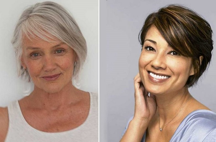La asimetría le da a la imagen un toque misterioso, a la vez que cubre las imperfecciones. ¡Luego de este corte, el rostro se ve visiblemente refrescado! La presente realización se ve impresionante en el pelo gris. Una franja oblicua va a transformar las facciones en magia, aunque el corte de pelo es un poco más largo.