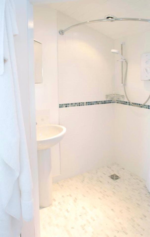 Un cuarto de baño cómodo y limpio.