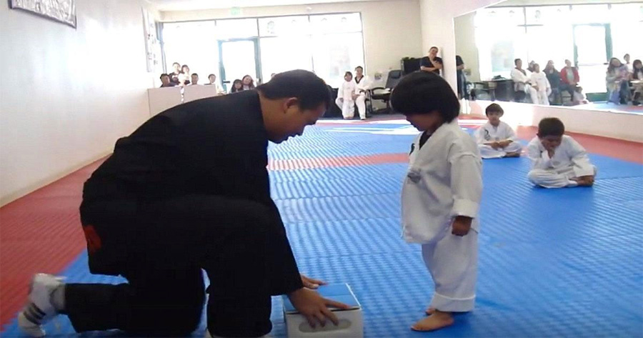 Este experimentado instructor de taekwondo había preparado la última prueba para sus aprendices. La misma consistía en mostrar la habilidad de romper la tabla de madera con un solo pie. Era el último paso que necesitaban los pequeños para ganar el tan codiciado cinturón blanco.