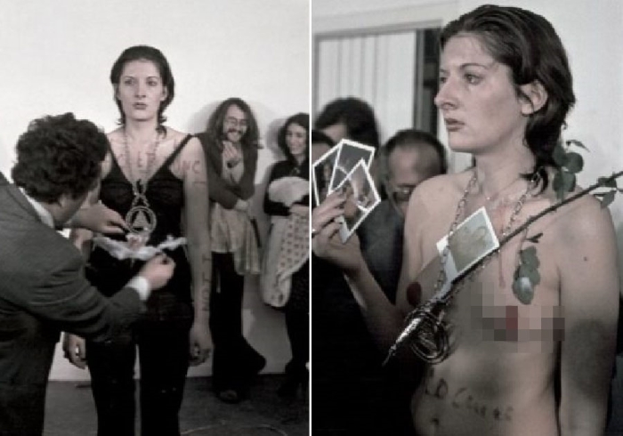Hoy te queremos hablar de uno de los performance más exigentes de Marina, que tuvo lugar en Nápoles, en 1974. La campaña se llamó «Ritmo 0». La idea era bastante simple: Abramovic se quedaría quieta durante 6 horas, y los visitantes podrían hacer con ella lo que quisieran, con la ayuda de 72 elementos que estaban distribuidos sobre la mesa.