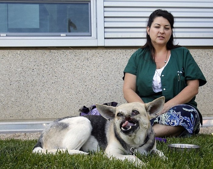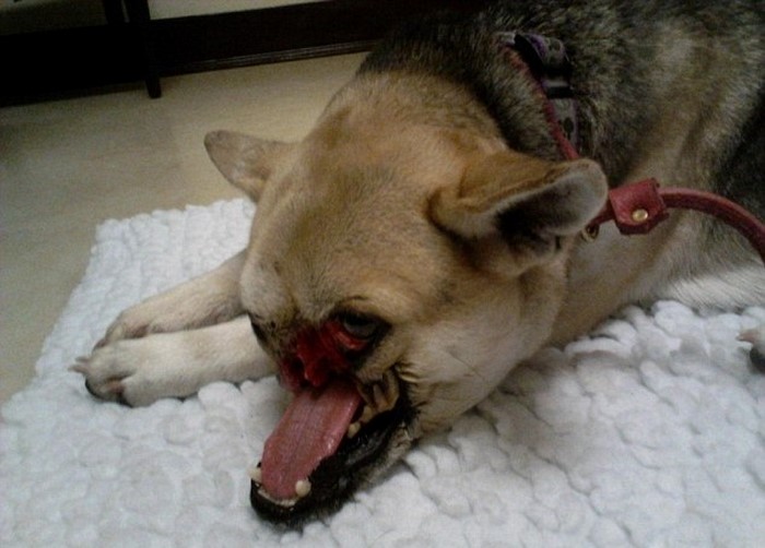 Inmediatamente después del incidente, la pobre heroína fue llevada al veterinario, quien les aconsejó a sus dueños la eutanasia, para librarla de un terrible sufrimiento. ¡Pero los dueños de la valiente perra se negaron a renunciar a ella tan fácilmente!