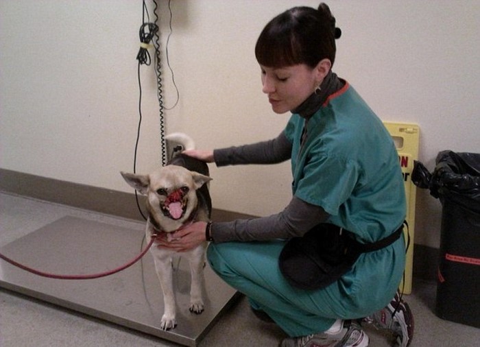 Inmediatamente después del incidente, la pobre heroína fue llevada al veterinario, quien les aconsejó a sus dueños la eutanasia, para librarla de un terrible sufrimiento. ¡Pero los dueños de la valiente perra se negaron a renunciar a ella tan fácilmente!