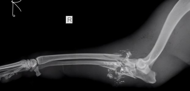 Perrita heroica, aunque muy maltratada, afortunadamente sobrevivió. Fue llevada a la clínica de la Sociedad de Protección y Cuidado de Animales de la Ciudad del Cabo (The Cape of Good Hope SPCA). Los veterinarios tuvieron que amputarle la pata delantera, pero Myra sobrevivió.
