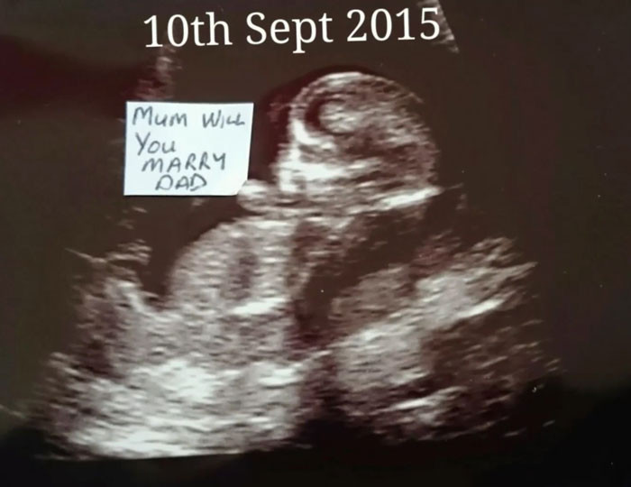 Al final, el chico se puso tan atrevido que pegó a la imágen de ultrasonido de su niño la inscripción: «¿Mamá, te casarás con papá?»