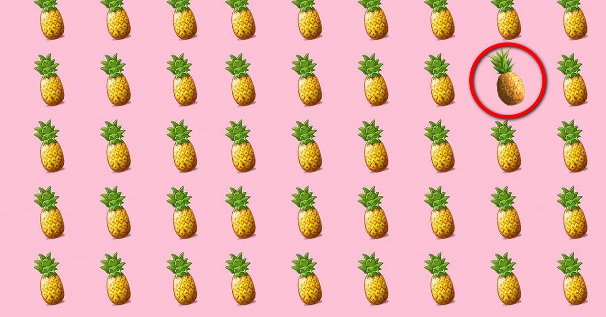 Nuestra redacción te propone terminar la semana laboral con la ayuda de un apetitoso puzzle. El caso es que en la imagen de abajo, entre las verduras, hay una piña especial (más adelante hablaremos de ella). Pero sólo el 3% de los internautas puede encontrarla. ¿Me pregunto si tú puedes hacerlo? Sólo tienes 15 segundos. Y, por supuesto, el tiempo corre.
