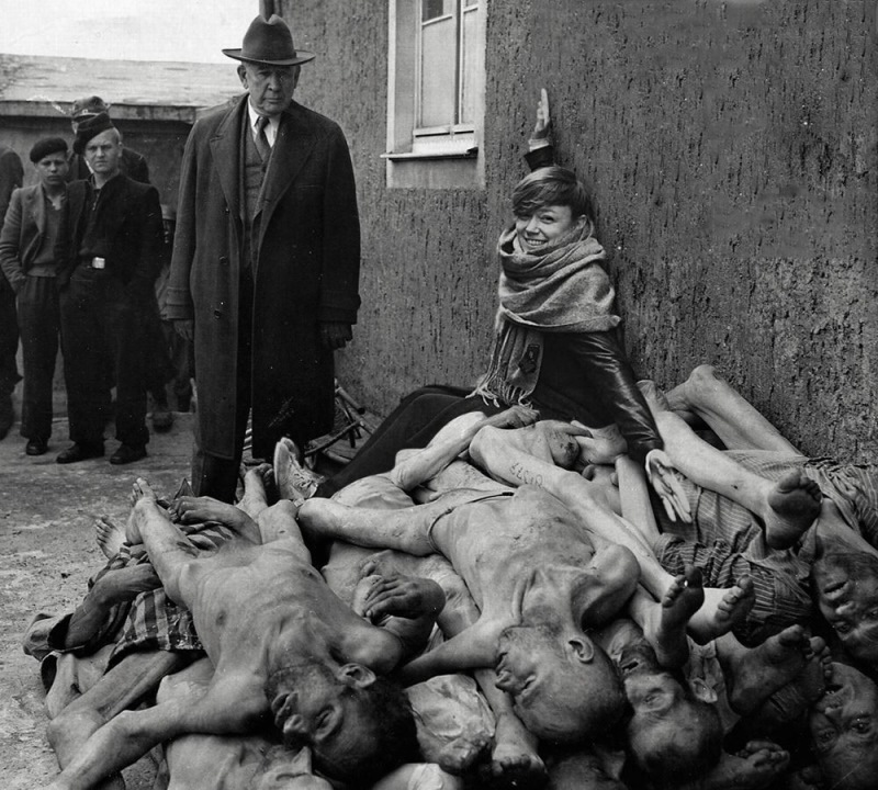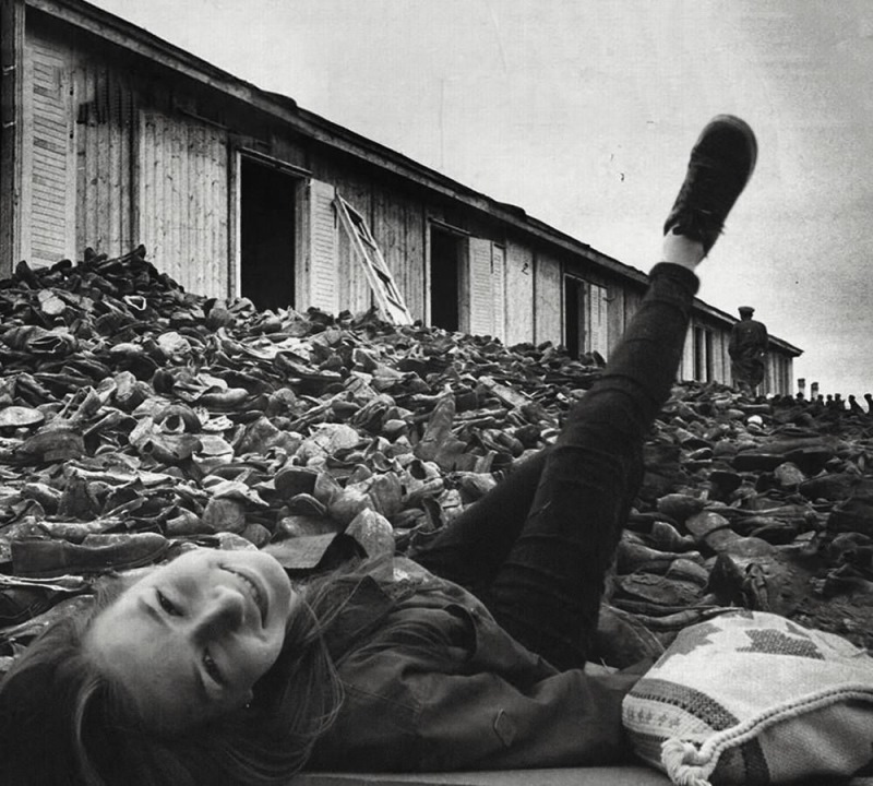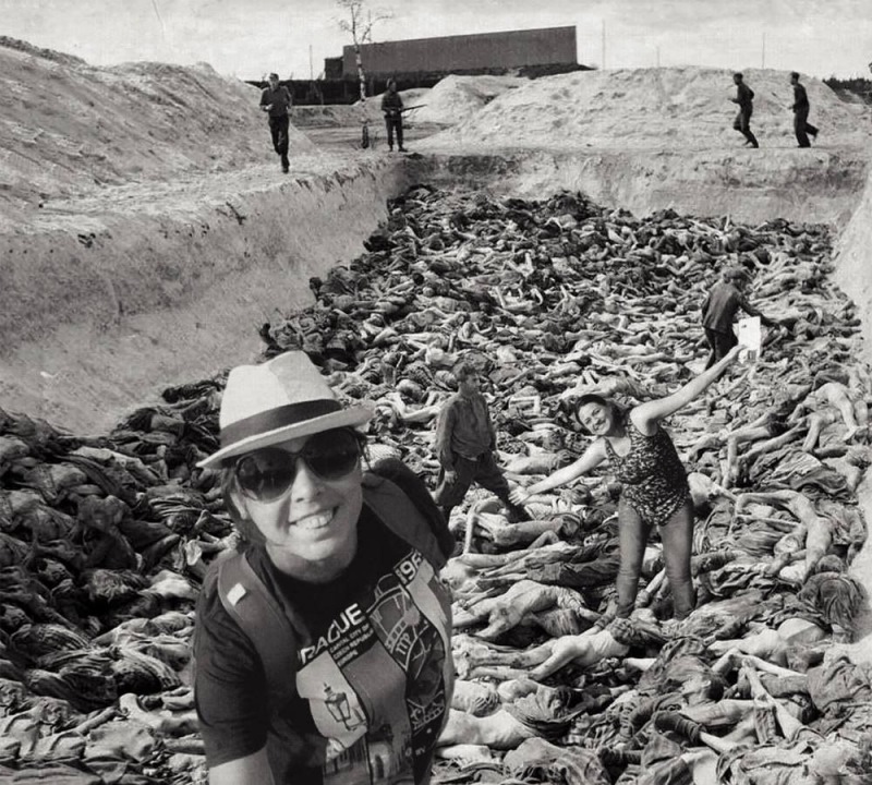 Hoy día, cientos de turistas llegan aquí para hacerse tontas selfies, y los ciclistas y los patinadores, a menudo, realizan acrobacias… ¡directamente sobre las losas de hormigón del monumento! Para mostrarle al mundo esta descomunal blasfemia, el artista israelí Shahak Shapira recopiló en las redes sociales atroces y ridículas imágenes, tomadas cerca del monumento a los héroes, y… las «trasladó al pasado», a los antecedentes históricos.