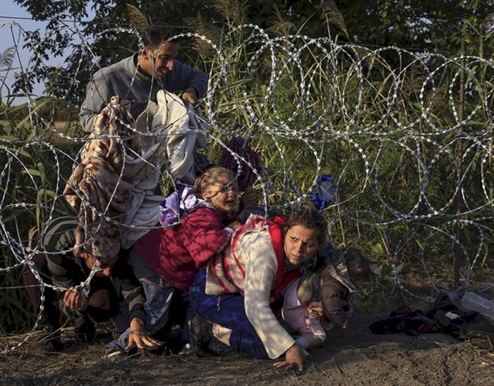 Los migrantes sirios están atravesando el alambre de púas tendido en la frontera entre Serbia y Hungría. (Thomson Reuters / Bernadette Sabo — agosto 27, 2015.)