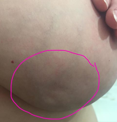 Antes de someterse a la cirugía, Kylie fotografió los hoyuelos en su pecho y los publicó en su cuenta de Facebook. Al pie de la foto escribió alertando a todas las mujeres para que, si detectan estos síntomas, acudan de inmediato al médico.