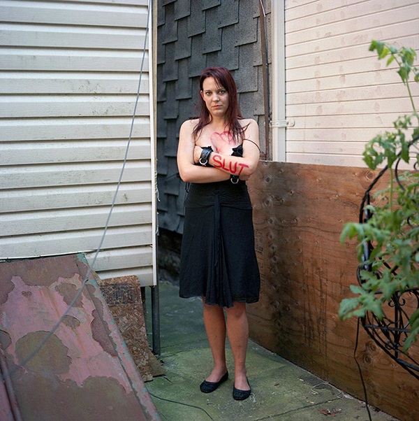 Bajo cada fotografía, Gittis presenta a los protagonistas del proyecto. Aquí, por ejemplo, una chica que adora jugar un juego de rol, donde simula ser violada.