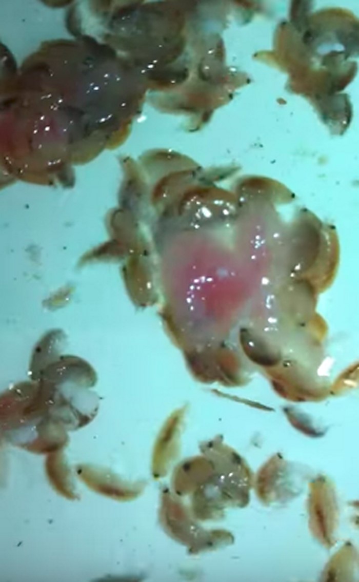 Mientras los médicos estabilizaban al joven, el preocupado padre fue a la playa donde ocurrió el incidente. El hombre tomó un pedazo de carne cruda y una red, y lo lanzó al agua. Poco después, atrapó a los causantes de las heridas de su hijo: un montón de pequeñas criaturas, similares a un cruce entre ácaros y camarones.