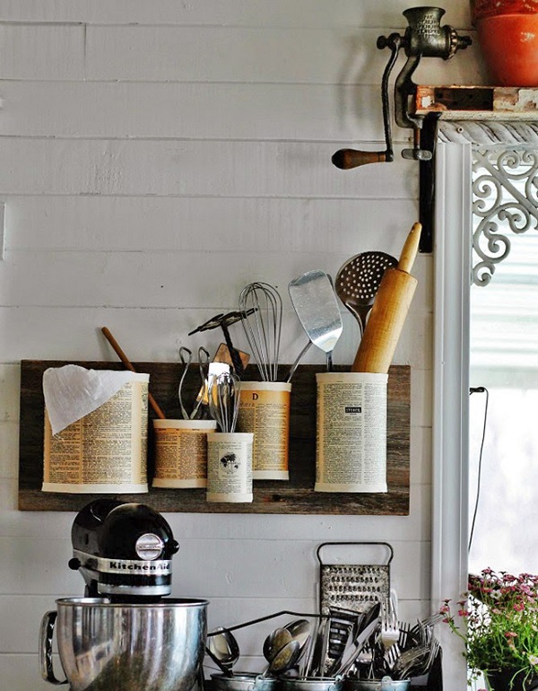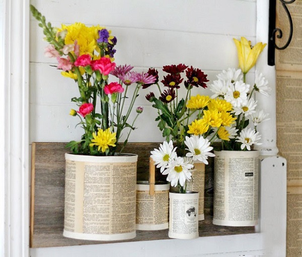 1. Todo lo que necesitas para una decoración elegante es: un par de periódicos viejos y latas de diferentes tamaños.