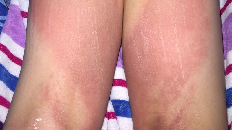 A primera vista, este enrojecimiento en ambas piernas parecía una quemadura solar ordinaria. Pero pronto en la piel aparecieron ampollas, y el niño sintió una fuerte sensación de ardor.