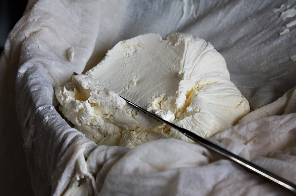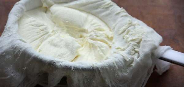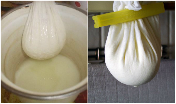 9. Cuando el suero deje de gotear activamente, coloca la tela en el colador y debajo ponle un plato y una jarra de agua. Finalmente coloca la crema en el refrigerador durante 9-10 horas.