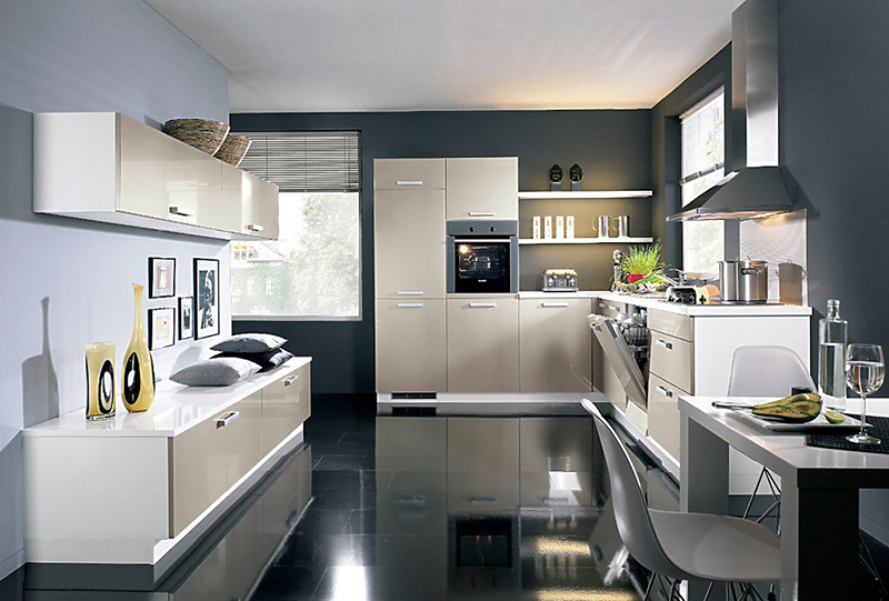 Frecuentemente, las superficies de trabajo en las cocinas grandes se extienden a lo largo de la pared. Pero una construcción así no es nada práctica, ya que la anfitriona se ve obligada a correr por toda la cocina mientras está preparando la comida. Así que una construcción en forma de U será más eficiente.