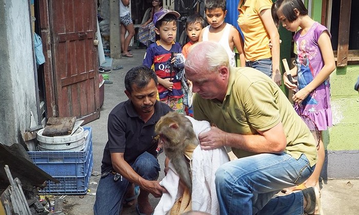 Los voluntarios tuvieron que ir a hablar con el dueño del mono, porque las leyes locales no les eran favorables. ¡Afortunadamente, las personas lograron comprarle el primate al dueño cruel!