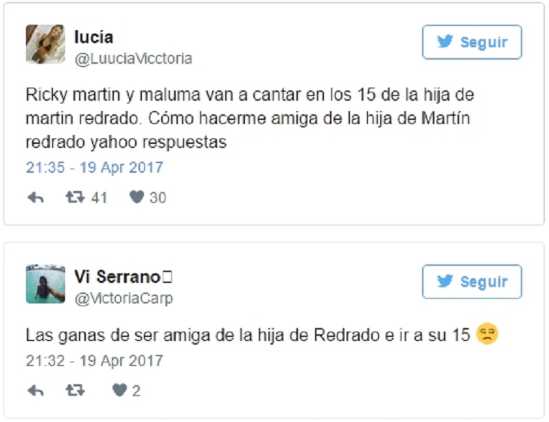 Así es, este economista, ex presidente del Banco Central de la Republica Argentina (BCRA), pagó la considerable suma de un 1 millón 600 mil dólares, para que ambas estrellas estén en la fiesta de cumpleaños de Martina. Como podrás imaginarte, los comentarios respecto a esta noticia no se hicieron esperar. En Twitter, muchas personas expresaron sus deseos de formar parte del círculo de amigos de Martina Redrado. ¡Y no es para menos!