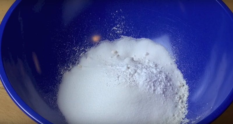 1. Mezcla la harina, el azúcar en polvo, el bicarbonato y el polvo para hornear.