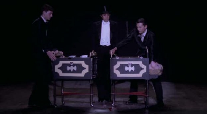 El aliento se nos fue el alma del cuerpo, cuando vimos al mago aserrar a su asistente. ¡De hecho, en el cuadro hay dos asistentes del mago!