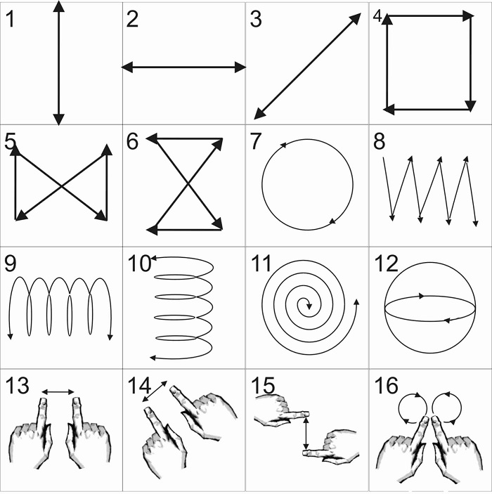 2. Realiza los 16 ejercicios que aparecen en la imagen más abajo, y que consisten en seguir las líneas con los ojos.