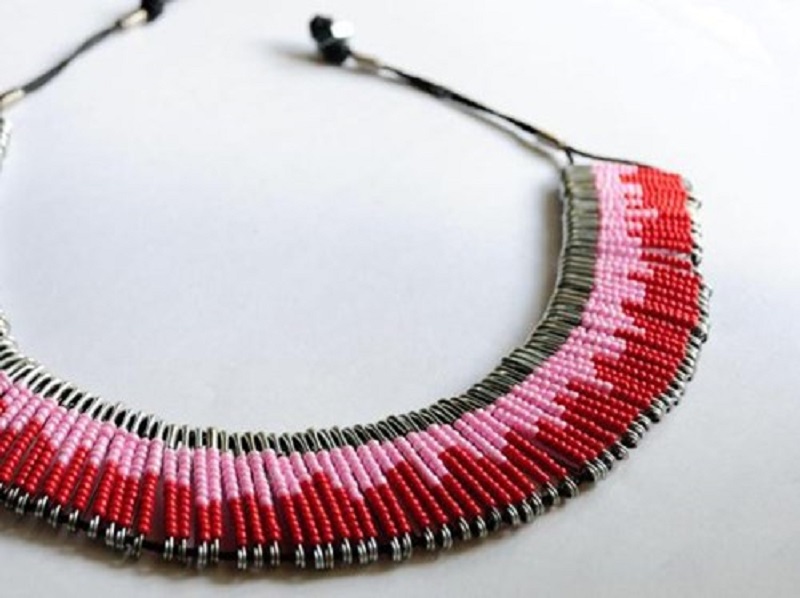 13. Una gran idea para las talentosas artesanas: collar de pequeños alfileres y perlas. ¡Grandioso!