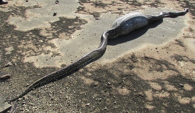 La gente pensaron que la serpiente se había comido una cabra o un ternero, y le dispararon al reptil…