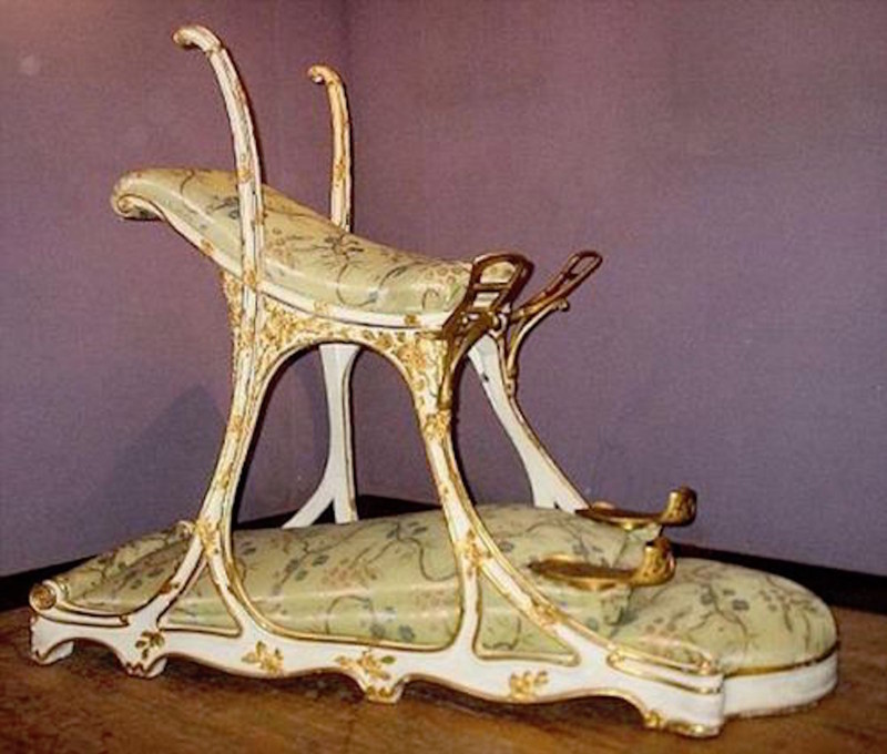 El hijo mayor de la reina Victoria tenía unas libritas de más, y esta silla le permitía practicar su pose favorita. ¡Además, gracias a ella, podía divertirse al mismo tiempo con dos amantes!