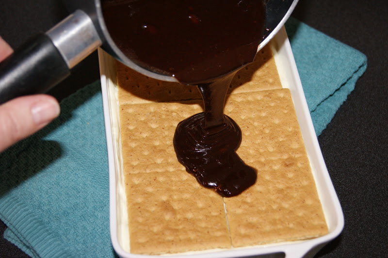 2. Coloca el papel de aluminio o el plástico de cocina en el fondo del molde para hornear. Desmigaja las galletas, si lo deseas. Agrega las galletas y la crema dentro del molde, alternando las capas. La capa final debe ser la de las galletas.