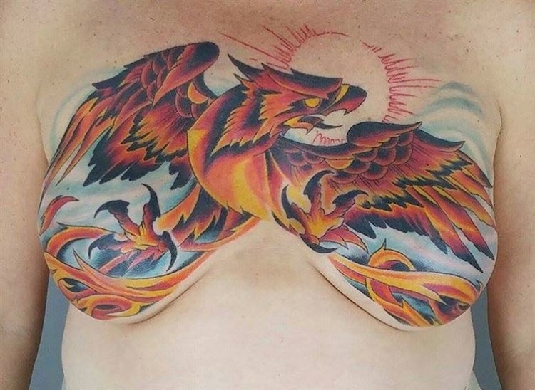 Este impresionante tatuaje simboliza el renacimiento y la victoria sobre la terrible enfermedad.