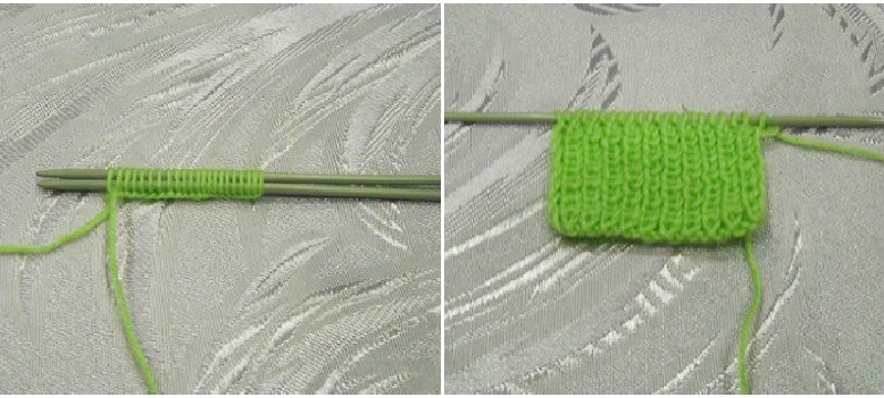 - El trabajo comienza con la preparación de la parte trasera del puño. Une las dos agujas y monta 22 puntos. Teje 4 cm de punto elástico 1 a 1.