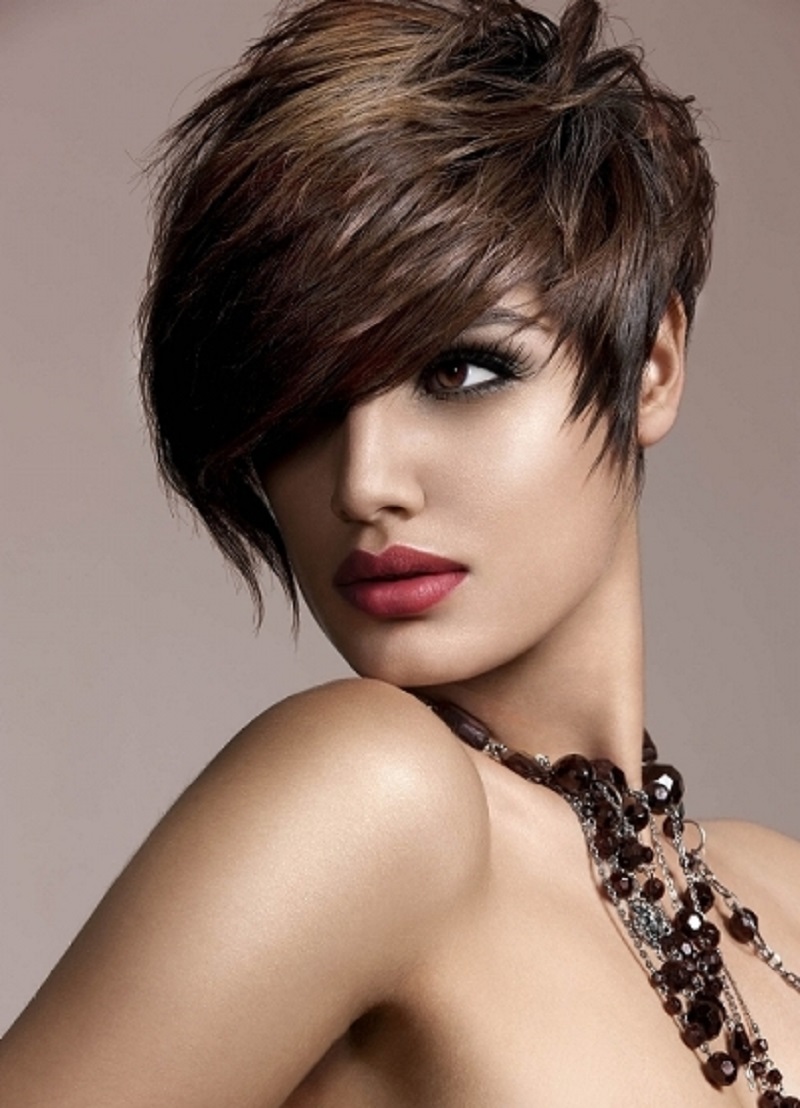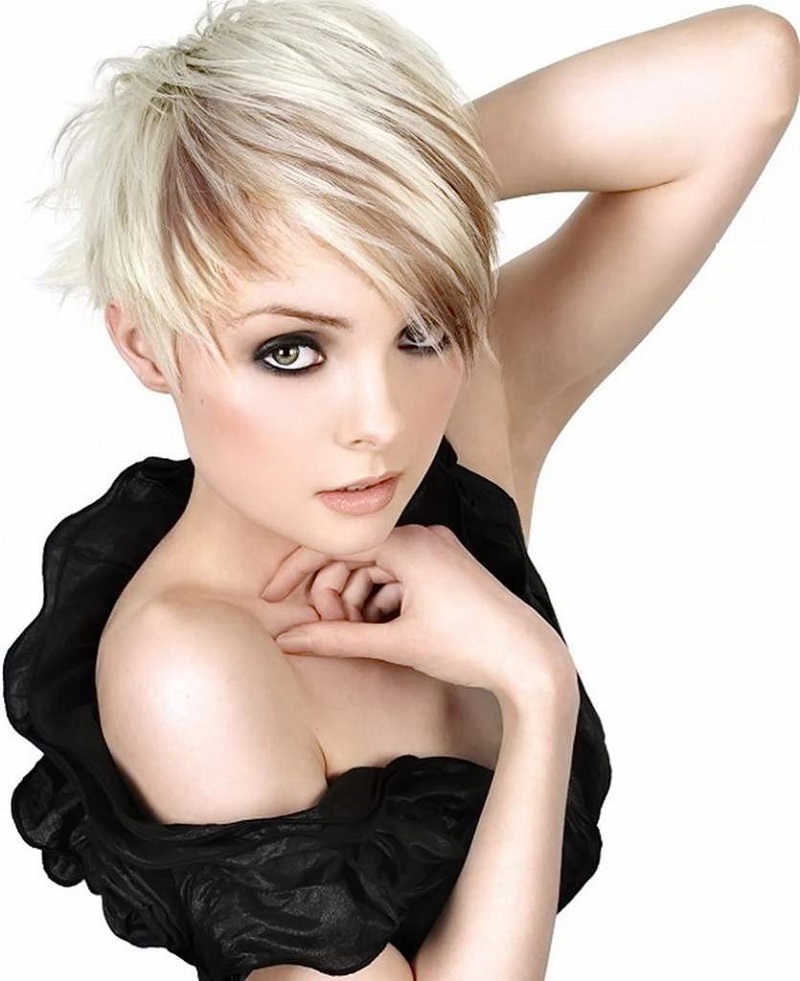 - La elección de un estilo de cascada corta depende del tipo de cara. En este momento, en el pico de la popularidad están las sofisticadas explosiones asimétricas, que simulan perfectamente a la forma de la cara.