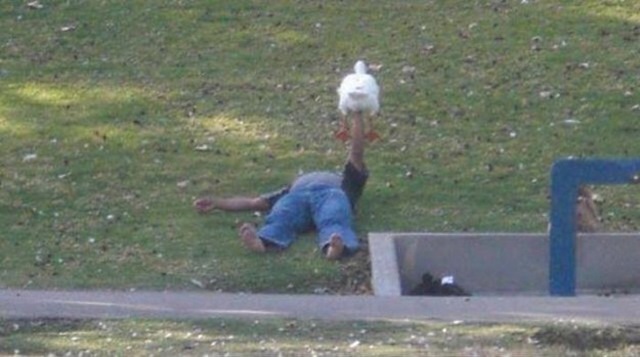 La gente aquí también son un poco extraña – pueden relajarse fácilmente en el parque con su oca preferida…