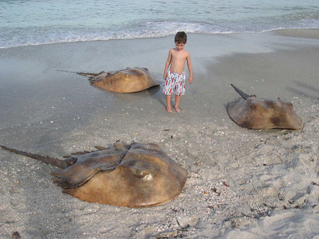 No, esto no es una invasión de alienígenas, son simplemente los «fósiles vivientes»: los habituales habitantes de la costa – cangrejos de herradura.